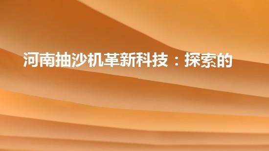 最先進抽沙機革新未來:探索關鍵詞在抽沙設備中的革新與應用!
